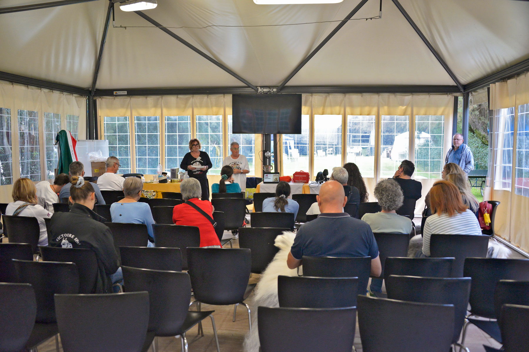 ...dallo stage di osteopatia con la dott.ssa Victoire Spas, alle manovre di Primo Soccorso Pet con Laura Donat, alla Cena Sociale e taglio della torta, alla preparazione del ring, alcuni momenti di attesa durante la gara, il concorso fotografico, la consegna del regalo al Giudice ed infine la firma dei libretti.